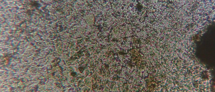 Ещё одна битва может происходить во рту. На этом видео с образцом моей слюны, взятым во время рвоты, летом можно увидеть грибки, потому что я пью воду, и их ядра — остатки пищи, которые могли попасть из моего горла или рта. Под микроскопом видно некоторое уплотнение. Иногда, когда язык пересыхает, возникает чувство жажды. Это более выражено у детей.